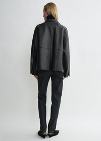 TOTEME Army jacket reinterpreted in mid-weight sheepskin leather for everyday city edits. It has an oversized shape with a silver zipper, roomy flap pockets, and paneled sleeves. Wear it in trans-seasonal weather with a sweater and trousers. Details & Fit - Black - Four patch pockets - Silver-tone metal zipper - Cuff slits - 100% Lamb leather - Specialist clean - Style number 233-108-737 - The model is 178cm/510 tall and wears a size 34 - Oversized fit, consider taking a size down