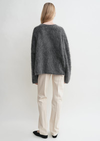 This crew-neck version of our recognizable boxy knit has an extra-wide silhouette for a cozy feel that is distinctive of TOTEME. It is knitted from mid-weight, hairy alpaca blended with recycled polyamide and elastane and has wide sleeves falling on the sides. Throw it on over jeans. Details & Fit - Dark grey melange - 78% alpaca, 19% polyamide recycled, 3% elastane - Cool hand wash - Style number244-WRT873-YA0106 - The model is 180cm/5'11 tall and wears a size XS/S - Designed for an oversized fit, go down a size if you prefer a neater look