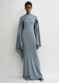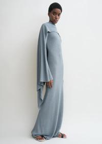 Long-sleeved TOTEME dress with a matching cape attached at the neck. It is knitted from voluminous silk boucle with a slim silhouette that flares gently toward the ankles. Pair it with sandals for an alfresco event. Details & Fit - Mistral - Attached cape - 73% recycled silk, 27% silk - Cool hand wash - Style number 252-WRD0168-YA0156 - The model is 178cm/510 tall and wears a size S - True to size