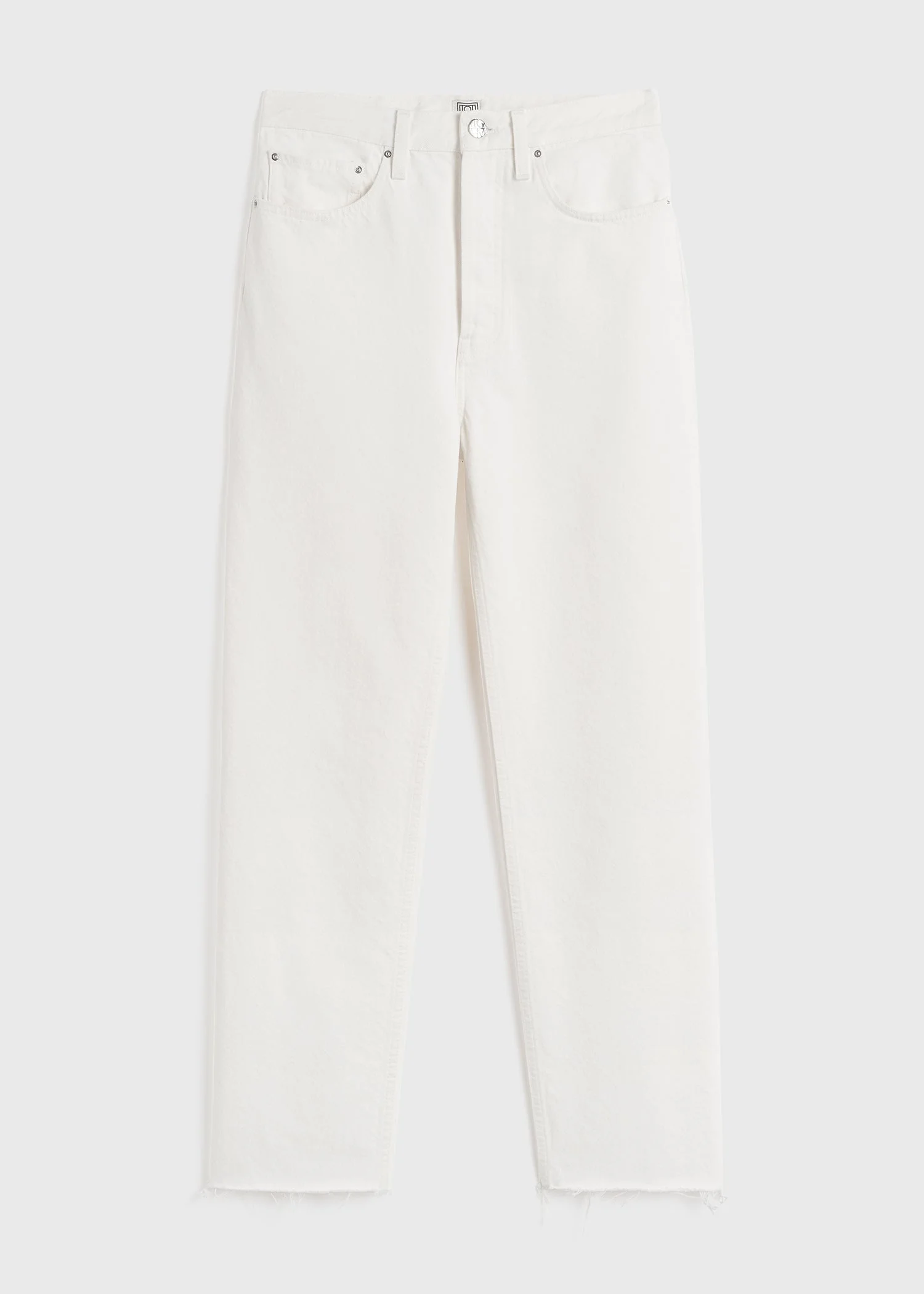 TOTEME jeans cut to a classic straight silhouette with slim thighs and cropped legs finished with raw edges for texture. They're made in Italy from rigid organic-cotton denim that will mold to fit you perfectly over time and feature a mid-to-high waistline fastening with a concealed button fly. Wear them everyday with flats or kitten heels. Details & Fit - Off-white - Button fly, silver-tone hardware - Belt loops, five pockets - Monogram leather patch - 100% Organic cotton - 30°C Machine wash - Style number 222-235-748 - Mid-to-high waist, cropped straight legs with slim thighs - The model is 178cm/510 tall and wears a size 26/34 - True to size