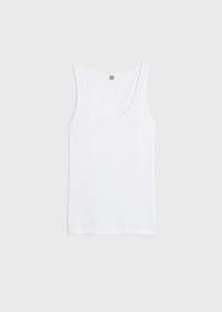 Everyday TOTEME top outlined with a scoop neckline and a slim silhouette. It's made from ribbed organic-cotton jersey blended with a touch of elastane for a comfortable, body-hugging fit. Wear it on its own or as a base layer for trans-seasonal looks. Details & Fit - White - 93% Organic cotton, 7% elastane - 30°C Machine wash - Style number 241-WRT1053-FB0094 - The model is 177cm/59 tall and wears a size S - Slim fit, true to size