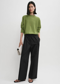 TOTEME trousers defined with a high waist and wide legs for sculptural effect. They are made from light organic-cotton poplin and have slender drawstrings and side slip pockets. Complement the long proportions with the matching Cropped cotton-poplin shirt. Details & Fit - Black - Drawstring waist - Side pockets - 100% organic cotton - 30°C Machine wash - Style number 243-WRB1709-FB0217 - The model is 181cm/5'11 tall and wears a size 36 - Relaxed fit, true to size - </ul>