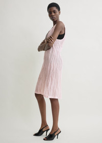 Tank dress crafted from crinkled cotton with metal yarn creating a translucent matte finish and subtle structure. The clean-lined silhouette falls below the knee. Details - Bloom - 81% organic OCS cotton, 19% metal - Dry clean - Style number 262-WRD0333-FB0616 Fit information - The model is 180cm/5’11” tall and wears a size 36 - Slim-straight fit Origin & Certificates - This product contains 81% Organic Content Standard (OCS) certified cotton, certified by Control Union, license number 1154443 - Made in Portugal - Manufacturer: FSM - Industria De Confeccoes, S.A. - Material woven in Italy; dyed in Italy