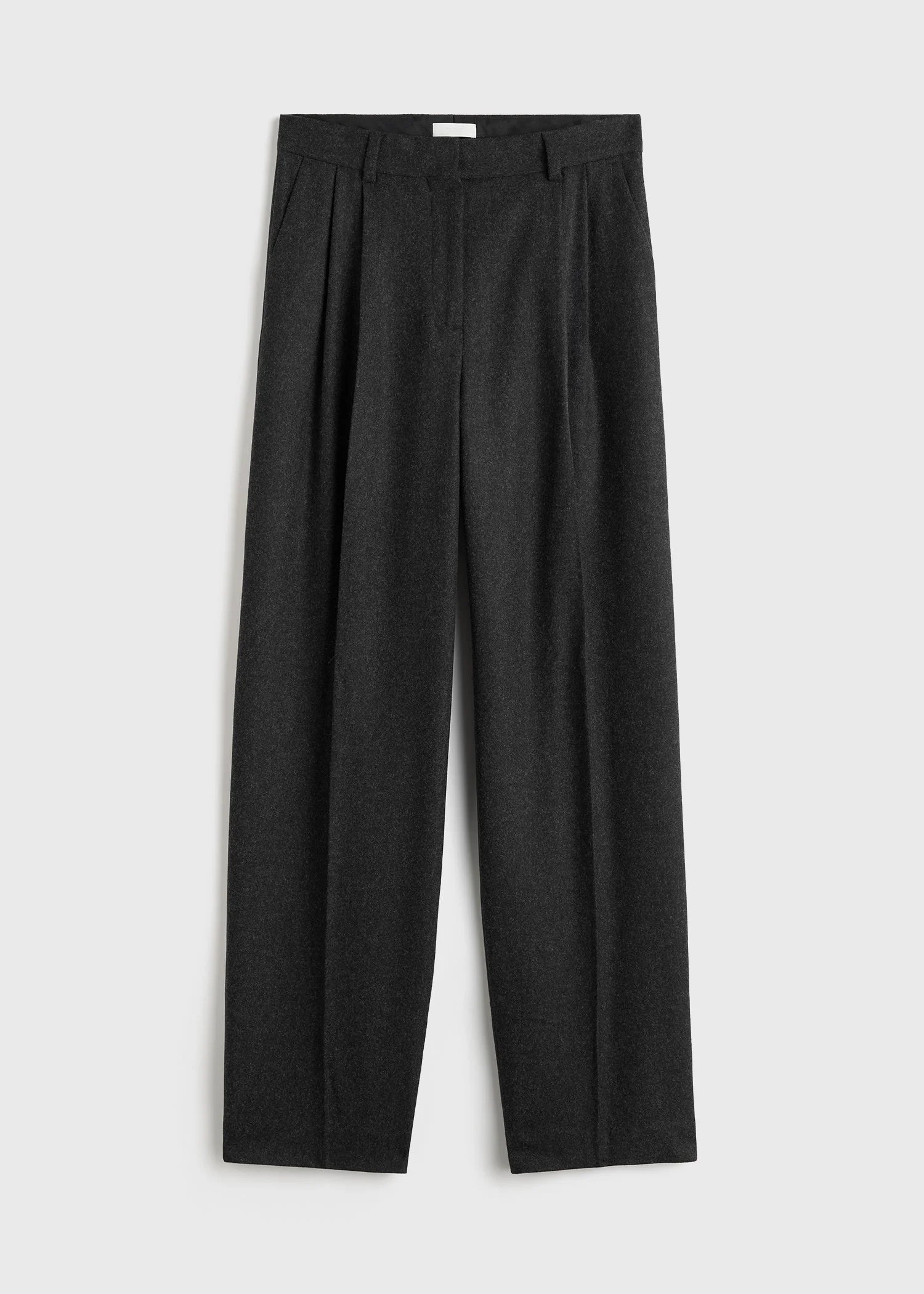 Designer’s note: "We go back to these trousers time and time again for their sophistication and ease. This variation is tailored from warm melange flannel for the wintertime. They have a relaxed silhouette with double pleats, and can be paired with anything from a simple knit to a neat blazer." Details & Fit - Charcoal - Belt loops - Side and back pockets - Hook and zipper fly - 70% wool recycled, 25% polyamide, 5% other fibers - Dry clean - Style number 254-WRB0289-FB0024 - The model is 180cm/5'11 tall and wears a size 36 - Mid-waist