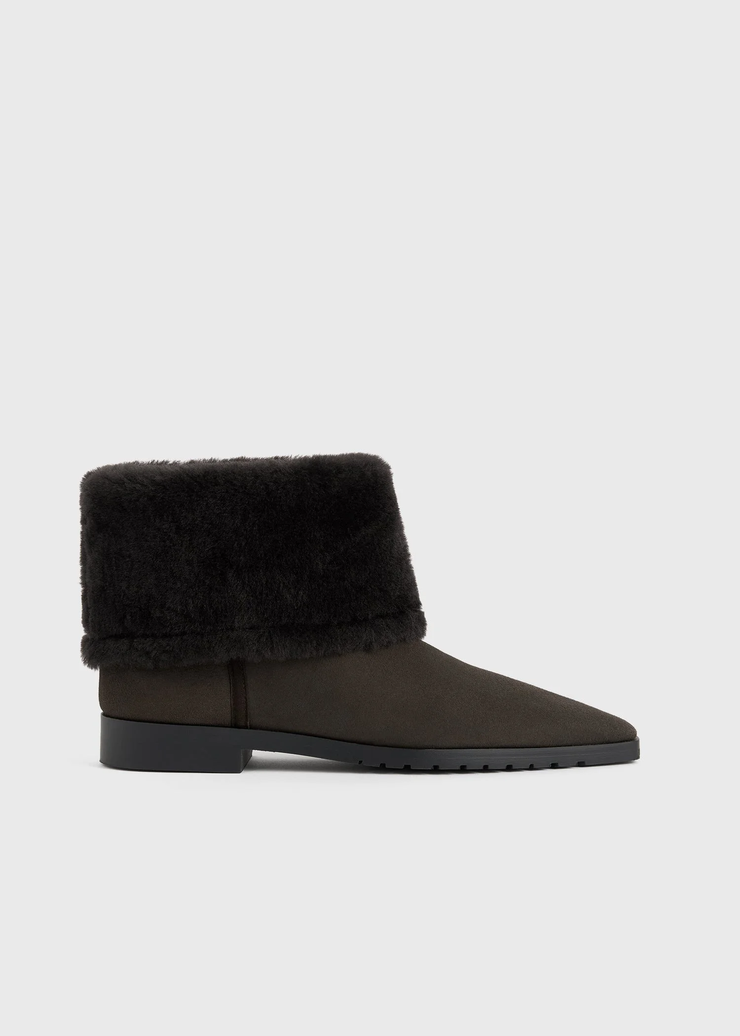Winter boots exuding an effortless everyday appeal, elevated by the elongated square-toe silhouette. They are made from soft lamb suede entirely lined with furry shearling for warmth and are set on an anti-slip rubber sole. Fold them down to keep the shearling in focus. Details & Fit - Pepper - Shearling lining - Rubber sole - 100% lamb leather; lining: 100% sheep leather; sole: 100% cow leather - Care instructions and dust bag included - Style number 254-WAS0255-LE0116