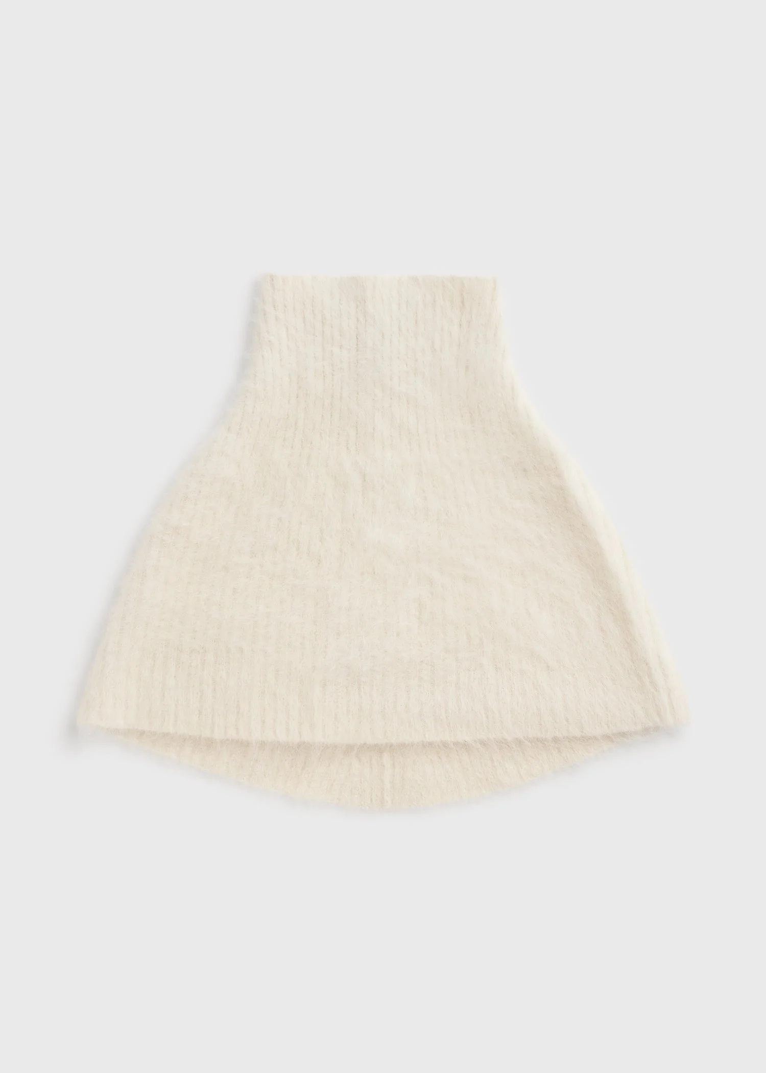 A directional neck warmer shaped to emulate a funnel neckline and rib-knitted from a warm alpaca blend that is brushed for softness. Layer it over a coat for extra warmth. Details & Fit - Ecru - 78% alpaca, 20% polyamide, 2% elastane - Cool hand wash - Style number 261-WSC0150-YA0106 - Width 37cm/14.5'' - Height 40cm/15.5''
