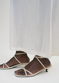 TOTEME sandals designed to style effortlessly with occasion and everyday looks. Made in Italy, they hug the foot with barely there leather crossover straps fastened with a silver-tone buckle. Wear them with anything from dresses to shorts. Details & Fit - Off-white - Leather insole and sole - 100% lamb leather - Care instructions and dust bag included - Style number 253-WAS0243-LE0143 - Average heel height 35mm/1.4" proportional to shoe size - True to size