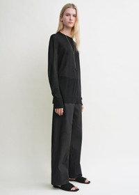 Oversized TOTEME crew-neck sweater inspired by an oversized, longline tee to channel a laidback mood. It is knitted from light and fine Lyocell blended with cashmere. Let it drape effortlessly over trousers. Details & Fit - Black - Light, semi-sheer knit - 90% lyocell, 10% cashmere - Cool hand wash - Style number 253-WRT0604-YA0079 - The model is 178cm/510 tall and wears a size S - True to size, extra long