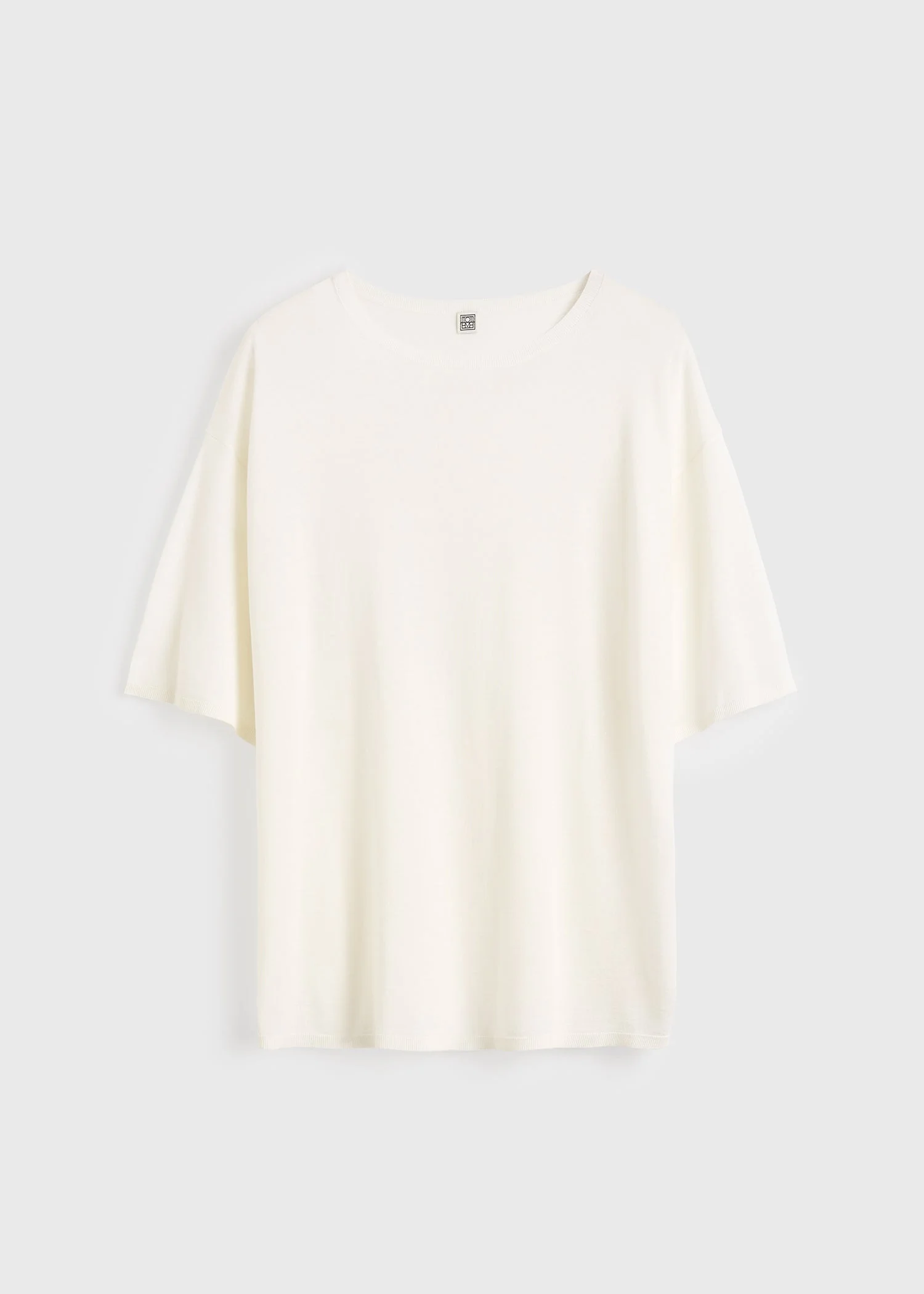 Pared-back sweater inspired by the idea of an oversized crew-neck tee. Knitted from an extra-fine, semi-sheer merino-wool blend, it has generous proportions, including wide short sleeves and a long hem falling over the hips. Pair with tonal trousers or leather skirt for modern contrast. Details & Fit - White - 60% wool, 40% acetate - Cool hand wash - Style number 254-WRT0620-YA0211 - The model is 180cm/5'11 tall and wears a size S - Oversized fit, long silhouette
