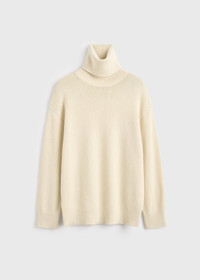 Long sweater envisioned for cozy moments. Knitted from soft cotton and cashmere yarns for an elevated handfeel, it has generous proportions and an extra long turtleneck that we like to style pulled up to the chin. Details & Fit - Ecru - 70% cotton organic, 30% cashmere - Cool hand wash - Style number 254-WRT0578-YA0212 - The model is 180cm/5'11 tall and wears a size S - Oversized fit, long silhouette