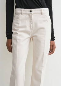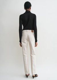 New TOTEME jeans designed to mimic trousers with a low-waist, sim-leg silhouette. They are made from organic-cotton denim with a classic five-pocket construction complemented with belt loops, a zipper fly and a back leather patch. Add a tucked-in top and sandals to complete a day-to-evening look. Details & Fit - Ecru - Silver-tone hardware - Belt loops, five pockets - Zipper fly - 100% cotton organic - 30°C machine wash - Style number 252-WRB0278-FB0422 - The model is 178cm/5'10 tall and wears a size 26/34 - True to size, low waist and slim legs