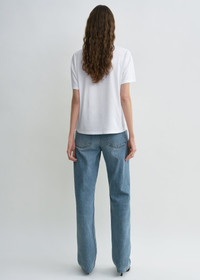 Designer’s note: “These jeans from the TOTEME Garderob curation have a classic mid-to-low waist and a straight silhouette softened by the true vintage wash. Partner them with heels to offset the relaxed, masculine look.” Details & Fit - True vintage - Zipper fly, silver-tone hardware - Belt loops, five pockets - Leather patch - 100% cotton organic - 30°C Machine wash - Style number 252-WRB0270-FB0423 - The model is 181cm/511 tall and wears a size 26/34 - True to size, low waist and full-length, straight legs