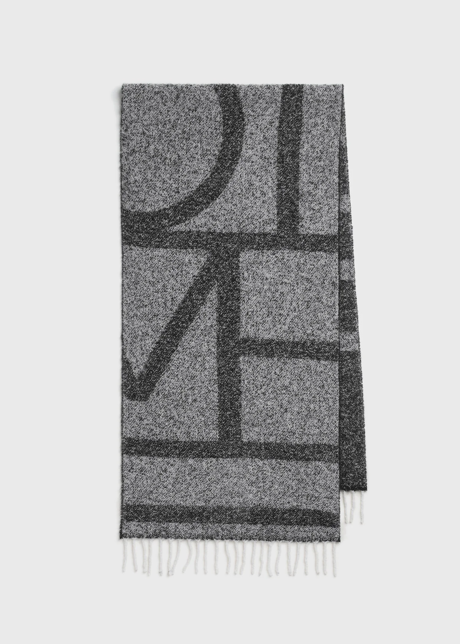 The Monogram jacquard scarf reimagined in warm alpaca-blend boucle for a grey finish with white fringe. Wear it to inject a touch of pattern and texture into winter looks. Details & Fit - Black/white - 80% alpaca, 20% polyester - Cool hand wash - Style number 261-WSC908-FB0630 - Length 220cm/86.6'' - Width 50cm/20''