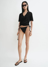 Designer's note: "For the TOTEME Garderob curation, we revisited our monogram swimwear through a feminine and sensual lens, echoing our affinity for transparency. These bikini bottoms are crafted from ribbed jersey with a drop-stitch monogram mimicking a delicate pointelle knit and have a minimalist silhouette with adjustable straps. Wear them as a set with the matching top." Details & Fit - Black - Adjustable side ties - Lightweight, ribbed fabric - Pointelle-effect drop-stitch monogram - Sheer mesh lining - 95% polyamide recycled, 5% elastane - 30°C delicate machine wash - Style number 253-WSW1029-FB0452 - The model is 180cm/511 tall and wears a size S - True to size