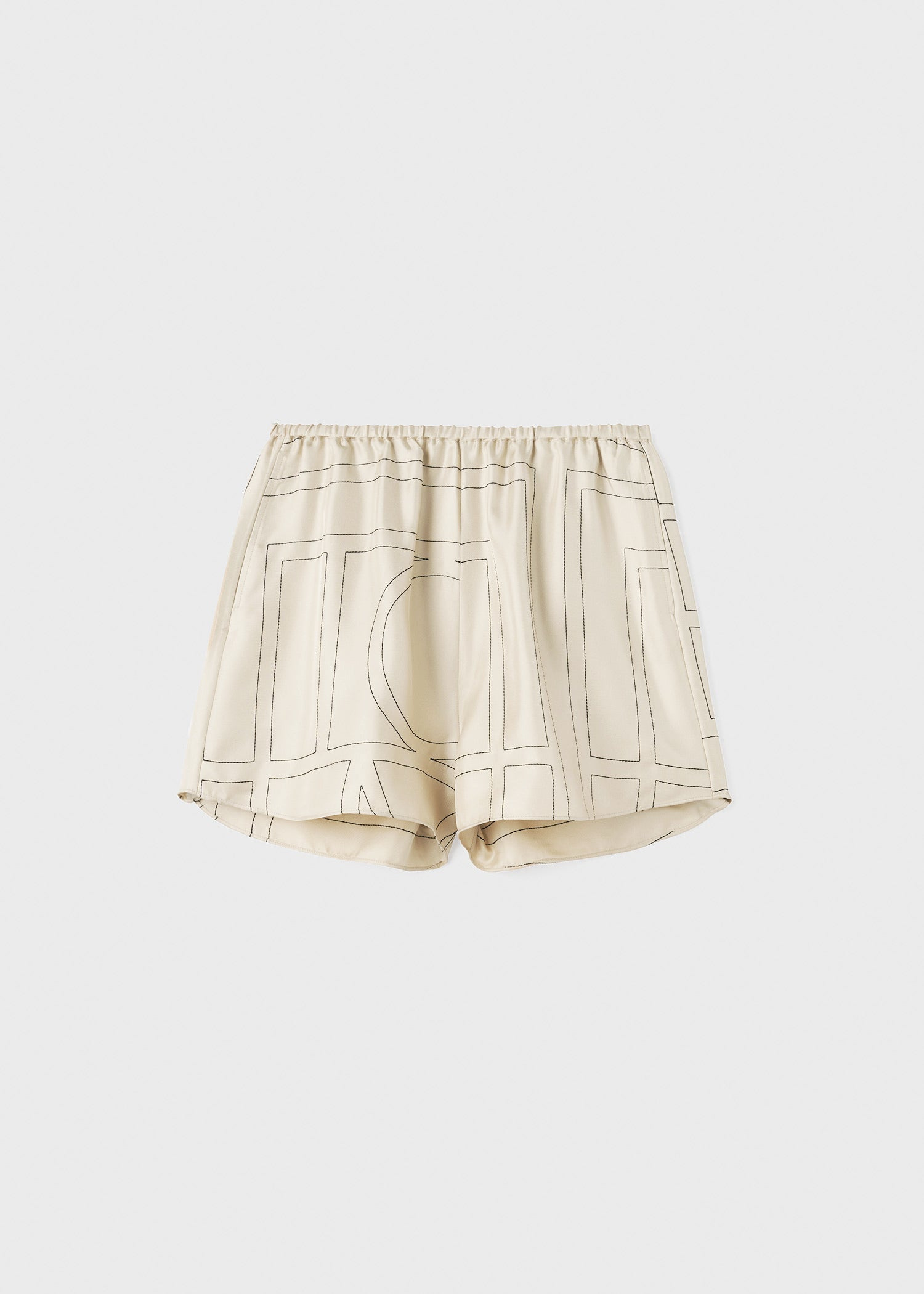TOTEME shorts made from lightweight, fluid silk twill embroidered with a fine monogram pattern in contrasting black thread. They have a relaxed, straight-leg silhouette inspired by classic pajamas and are finished with an elasticated waistband and side pockets. Coordinate them with the Monogram silk pj top or with a simple tank top. Details & Fit - Ivory - Side pockets - 100% Silk - Dry clean - The position of the monogram pattern may differ from the pictures - Style number 223-226-707 - The model is 181cm/5'11 tall and wears a size 36 - True to size - </ul>
