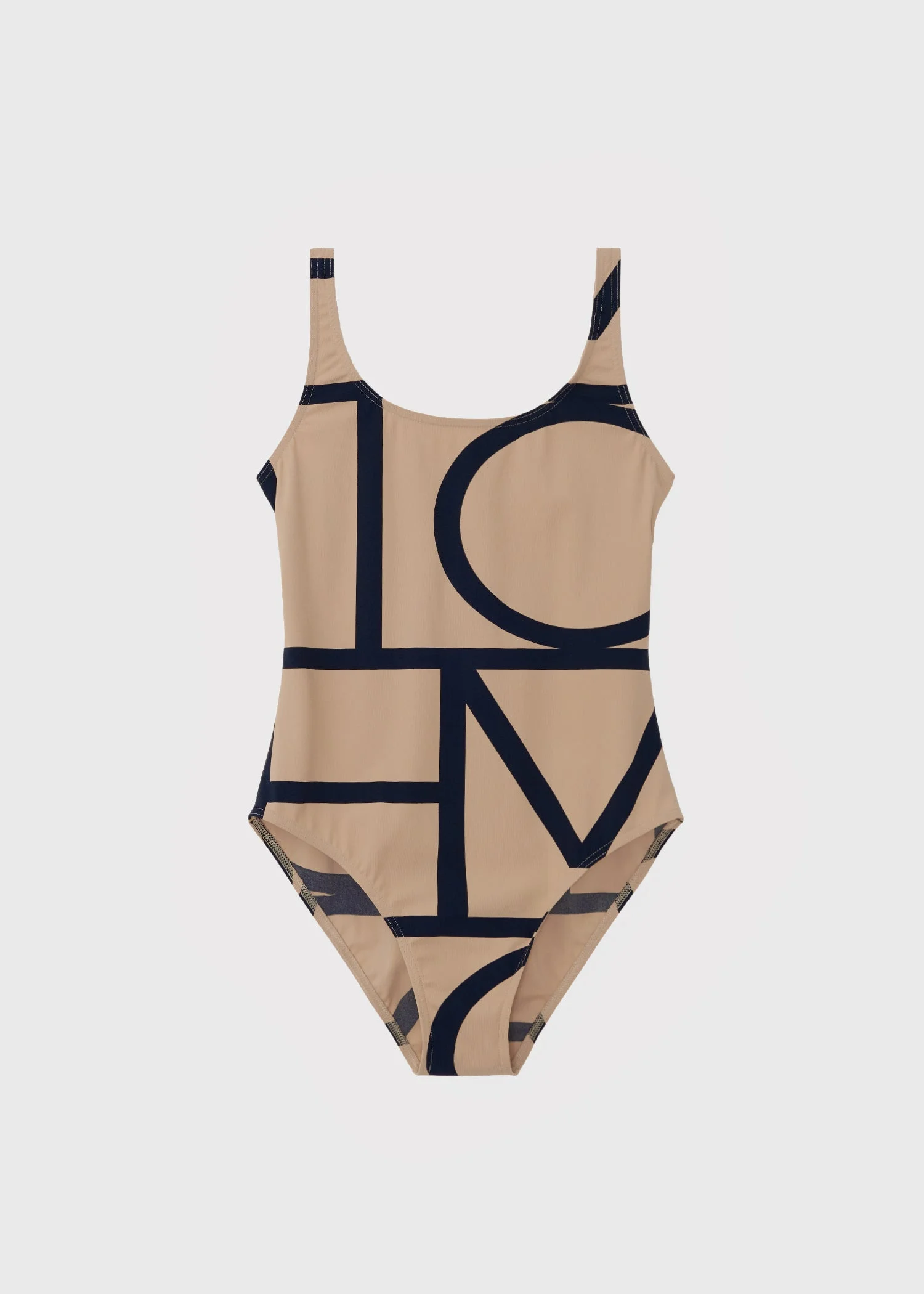 This swimsuit is printed with TOTEME's signature monogram pattern in beige and black. It's made in Portugal from four way-stretch, recycled-polyamide jersey which protects against sun rays, and is shaped to a classic scoop-neck silhouette with a deep U-back. Pack it with the Monogram jacquard beach towel for your next vacation. Details & Fit - Beige - 73% Recycled polyamide, 27% elastane - 30°C Machine wash - The position of the monogram pattern may differ from the pictures - Style number 213-842-795 - The model is 180cm/511 tall and wears a size S - True to size if you have a longer torso, consider taking a size up - </ul>