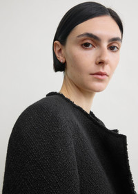 This refined blazer repositions the classic box jacket with oversized proportions and pared-back details. Crafted in textured boucle, it features an open front and is accented with raw-edged finishes. Complement the boxy fit with relaxed tailoring. Details & Fit - Black - Welt pockets - Raw edges - 32% wool, 23% acrylic, 18% recycled wool, 14% recycled acrylic, 13% polyester - Dry clean - Style number 262-WRZ0069-FB0613 - The model is 180cm/5'11 tall and wears a size 36 - Boxy fit