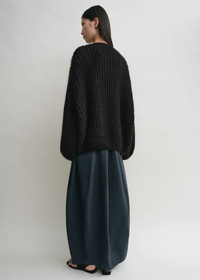 Directional TOTEME cardigan knitted by hand to oversized, puffed proportions. It is made from a light and warm mohair blend with an open front that can be worn overlapped or left to drape. Style it over a dress to entertain at home. Details & Fit - Black - 56% mohair, 30% recycled polyamide, 14% wool - Cool hand wash - Style number 252-WRT0465-YA0160 - The model is 180cm/5'11 tall and wears a size S - Designed for an oversized fit, go down a size if you prefer a neater look