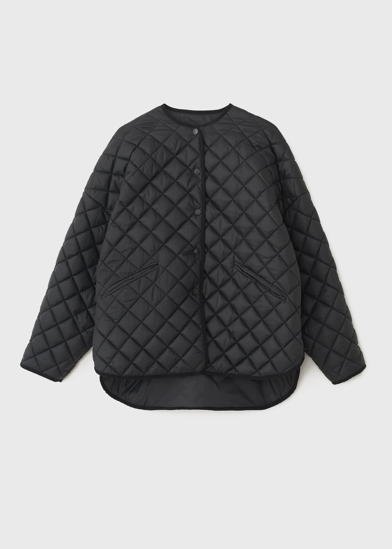 Oversized TOTEME quilted jacket cut to a billowing silhouette that dips effortlessly down the back, creating a chic A-line profile. It's made from water-resistant recycled polyester with dropped shoulders, press buttons and side pockets, then is fitted with ribbed cuffs to keep you warm. Wear it as intended or go down a size for a more compact look. Details & Fit - Black - Press buttons - Slip pockets - Matching lining - 100% Recycled polyester; lining: 100% recycled polyester; filling: 100% recycled polyester - Dry clean - The model is 179cm/5'10" tall and wears a size S - Designed for an oversized fit, go down one or two sizes for a neater look - Style number 211-177-732 - Designed for an oversized fit, go down two sizes for a neater look - The model is 179cm/5'10" tall and wears a size S
