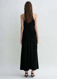 Designer’s note: “What sets this TOTEME Garderob tank dress apart is its understated scoop neckline and elongated silhouette, elevated by the rich texture of the sable fabric and the raw, frayed hem. Wear it during the day with sandals to channel a bohemian summer mood, then add a clutch to transition seamlessly to dinner.” Details & Fit - Black - Raw hem - Concealed back zipper - Mid-weight sable with a soft texture and fluid drape - 100% viscose - Dry clean - Style number 243-WRD4142-FB0240 - The model is 181cm/511 tall and wears a size 36 - Relaxed fit, low armholes and long silhouette