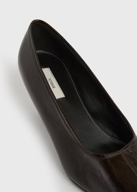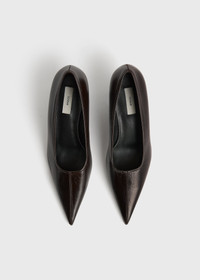Our sharp-toed pumps are revisited with an architectural half-wedge heel construction. They are made from glossy naplack leather with a softly crinkled effect. Details & Fit - Bark - Leather lining, insole and sole - Tapered half-wedge heel - 100% calf leather: lining: 100% sheep leather; sole: 100% cow leather - Care instructions and dust bag included - Style number 261-WAS0276-LE0020 - Average heel height 55mm/2.2" proportional to shoe size - True to size