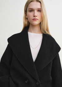 This oversized TOTEME cardigan has curved shawl lapels and wide sleeves with dramatic rounded proportions. It is knitted from a heavyweight, ribbed wool blend and set with a double-breasted front fastened with tonal buttons. Wear it as a sculptural outerwear piece. Details & Fit - Black - Wide armholes and sleeves - Button front - 85% wool RWS, 15% polyamide - Cool hand wash - Style number 251-WRT4354-YA0110 - The model is 178cm/510 tall and wears a size S - Oversized fit