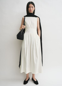 Off-white iteration of the TOTEME tee dress with a sleeveless torso, fitted waist panel and flaring, calf-grazing skirt. It is made from mid-weight organic-cotton jersey and set with convenient side pockets. Accessorize it with anything from sneakers to flats and sandals. Details & Fit - Off-white - Side slip pockets - 100% organic cotton - 30°C machine wash - Style number 242-WRD1783-FB0093 - The model is 180cm/5'11 tall and wears a size S - True to size