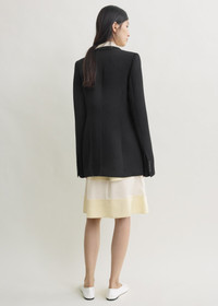 Blazer that blends sharp tailoring codes and directional proportions. Crafted from supple viscose wool, it features a fitted silhouette from the waist down, with strong shoulder definition, pressed sleeves and angled narrow lapels. Details & Fit - Black - Front button - Flap pockets - 60% viscose, 40% wool - Dry clean - Style number 262-WRZ0067-FB0336 - The model is 180cm/5'11 tall and wears a size 36 - Slim fit