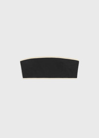 Minimalist bikini top inspired by the contrasting stripes on TOTEME's Centered monogram silk scarf. It's made from fully lined stretch jersey to a strapless bandeau silhouette that's supported with a silicone trim inside. Wear it with the coordinating bikini bottoms or mix and match with the opposite color combination. Details & Fit - Black - Light hay trim - Fully lined - 71% Recycled polyamide, 29% elastane - 30°C Machine wash - Style number 241-WSW1041-FB0097 - The model is 175cm/59 tall and wears a size S - True to size