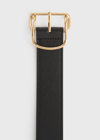New TOTEME belt set with a sculptural buckle inspired by the intertwining shapes of the Swirl jewelry pieces. It is Italian-crafted from Palmellatta leather to a 4cm width devised to complement statement looks. Wear it against light-hued trousers for contrast. Details & Fit - Black - Gold-tone metal buckle - Leather lining - 100% cow leather - Care instructions and dust bag included - Style number 252-WAM0046-LE0025 - Length 70cm/27, 80cm/31 or 90cm/35 (measured from buckle base to middle hole) Width 4cm/1.6"