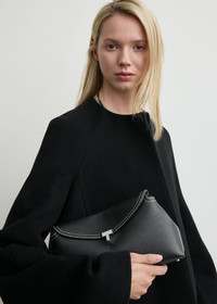 Sculptural TOTEME clutch bag named T-Lock after the silver-tone metal twist lock securing the curved top flap. It's crafted in Italy from supple yet resilient pebble-grained leather finished with contrast topstitching and protective feet, then opens to a beige microsuede interior fitted with a leather card slot. Hold it in your hand or carry it across the body using the detachable and adjustable strap. Details & Fit - Black grain - Detachable, adjustable strap (must be attached with the clasp opening facing inwards) - Silver-tone twist lock - Easy-to-clean beige microsuede lining - 100% Cow leather; lining: 60% polyurethane, 40% polyamide - Care instructions and dust bag included - Style number 234-WLGBG423-LE0030 - Strap drop length adjustable (44cm/17.3" on middle hole) - Height 14cm/5.5" - Width 26cm/10.2" - Depth 9cm/3.5" - Strap drop length adjustable (44cm/17.3" on middle hole) - Height 14cm/5.5" - Width 26cm/10.2" - Depth 9cm/3.5"