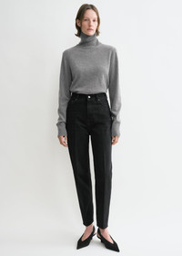 Directional jeans inspired by the dressed appeal of tailored trousers — a carrot-leg silhouette that drapes over the hips and thighs and tapers toward the ankle. They are crafted in Italy from 100% organic cotton which will mold to the body over time for a personalized fit. Details & Fit - Faded black - Zipper fly, silver-tone hardware - Five pockets, belt loops, finished hem - Leather patch - 100% organic cotton - 30°C machine wash; avoid rubbing against light-colored fabrics and surfaces as some discoloration may occur - 234-231-744 - Model is 178cm/510 tall and wears a size 26/34 - Mid waist intended to sit just above the hip, carrot leg, ankle length - Consider taking a size down