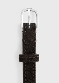 This 15mm-wide version of TOTEME's Slim trouser belt is made from espresso-brown suede that's topstitched for definition and fastened with a polished silver-tone metal buckle. Wear it throughout the week with work and off-duty looks. Details & Fit - Espresso brown - Silver-tone metal buckle - 100% Cow leather - Care instructions and dust bag included - Style number 234-WLGBT212-LE0004 - Adjustable fit - Length 70cm/27, 80cm/31 or 90cm/35 (measured from buckle base to middle hole) - Width 1.5cm/0.6" - Adjustable fit - Length 70cm/27, 80cm/31 or 90cm/35 (measured from buckle base to middle hole) - Width 1.5cm/0.6"
