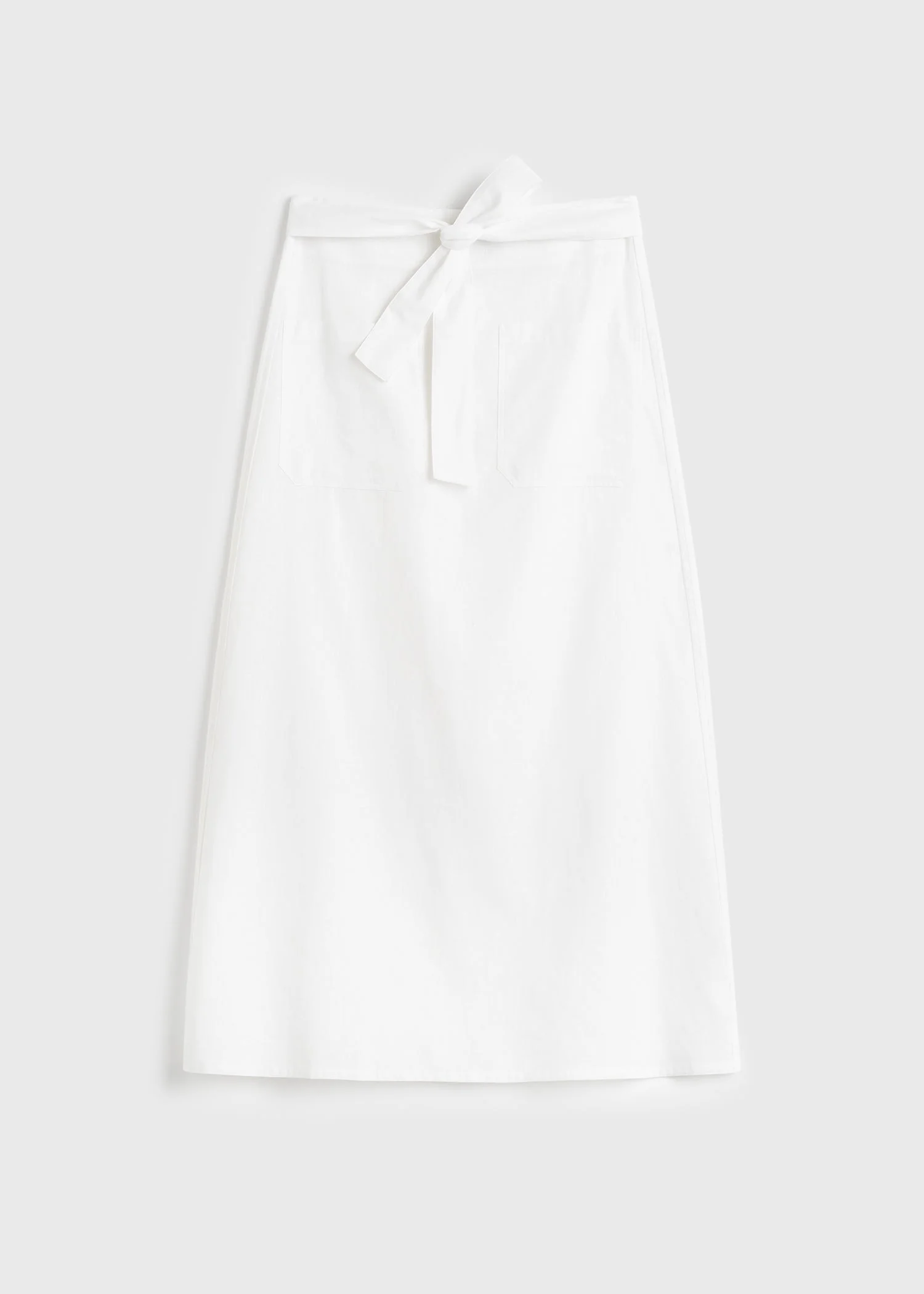 Designer's note: "This TOTEME Garderob midi skirt is defined by a sense of femininity and ease. Designed for warm days in the city and summer vacations, it’s crafted from crisp cotton linen with a semi-sheer finish offset by considered patch pockets. Wear it over a swimsuit with the waist ties fastened into a neat bow." Details - White - Light, semi-sheer fabric - Attached waist ties - Patch pockets - Concealed back zipper - 55% cotton, 45% linen - 30°C delicate machine wash - Style number 253-WRB0203-FB0458 Fit information - The model is 180cm/5’11” tall and wears a size 36 - True to size, high waist Origin & Certificates - Country of origin: Turkey - Manufacturer: Mergu