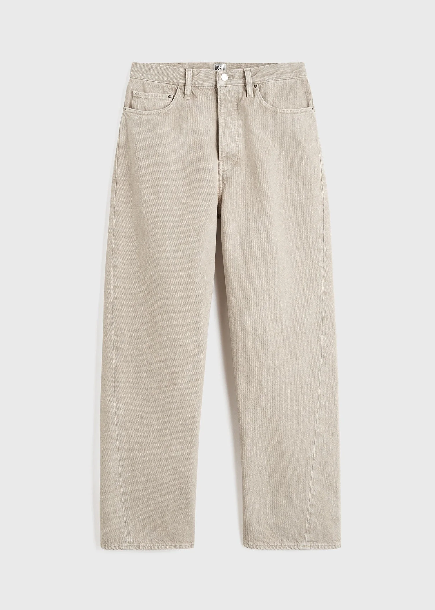 Versatile straight-leg jeans designed to sit on the hips with a dropped rise and relaxed fit — or a neater, waisted silhouette by going one or two sizes down. Building off our signature Twisted seam denim, they are constructed with directional side seams for a touch of movement. Details & Fit - Smoke grey - Button fly, silver-tone hardware - Five pockets, belt loops, finished hem - Leather patch - 100% organic cotton - 30°C machine wash - 234-240-748 - Model is 178cm/510 tall and wears a size 26/34 - Low waist intended to sit on the hip with a dropped rise, straight leg, full length - True-to-size for a relaxed look; go down a size or two for a closer, higher-waist fit