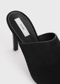 Seen throughout the Summer 25 runway, these TOTEME mule sandals have a bold bandeau-style upper made from soft velour leather and are set on a confident 85mm stiletto heel. Slip them on under dresses and skirts. Details & Fit - Black - Leather lining and sole - 100% cow leather - Care instructions and dust bag included - Style number 253-WAS0245-LE0004 - Average heel height 85mm/3.5" proportional to shoe size - True to size