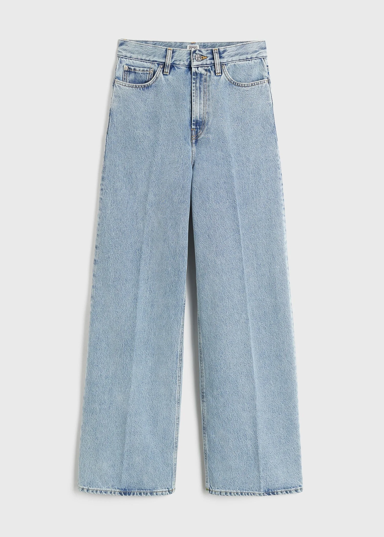 TOTEME’s take on wide-leg jeans are cut to sit high on the waist with floor-sweeping legs for an elongated look; size up to rest on the hips for a more relaxed silhouette. They are finished with a pressed crease, a nod to tailoring codes. Style with flat loafers. Details & Fit - Cool blue - Zipper fly, silver-tone hardware - Five pockets, belt loops, finished hem - Leather patch - 100% organic cotton - 30°C machine wash - 242-WRB2426-FB0045