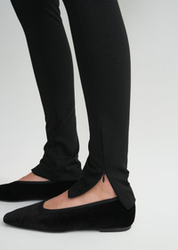 TOTEME leggings finished with cuff zippers that resemble slits when left open. They're made from dense jersey containing viscose fibers sourced responsibly from wood pulp, and fit to a second-skin silhouette with an elasticated high waist and slim legs. Wear them at home or on a long-haul flight. Details & Fit - Black - Elasticated waistband - Concealed cuff zippers - 70% Viscose, 23% polyamide, 7% elastane - 30°C Machine wash - Style number211-238-774 - The model is 179cm/510 tall and wears a size S - True to size, long legs