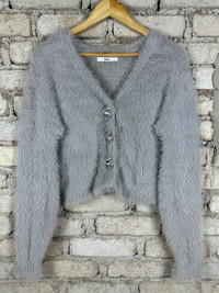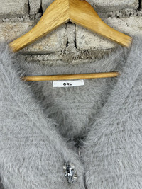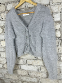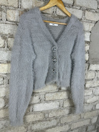 Vintage GRL Mohair Shag Shaggy Cardigan Knitwear Grey