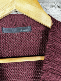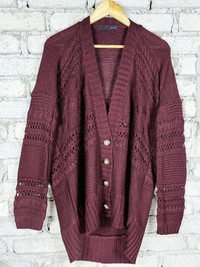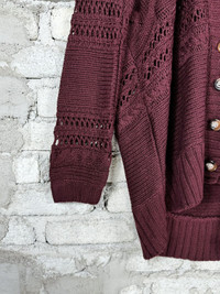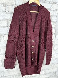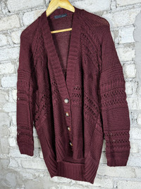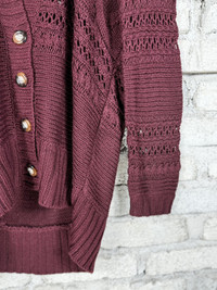 Vintage Pinenine Long Cardigan Crochet Table Cloth Maroon