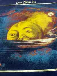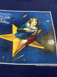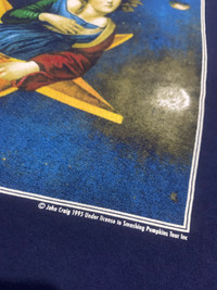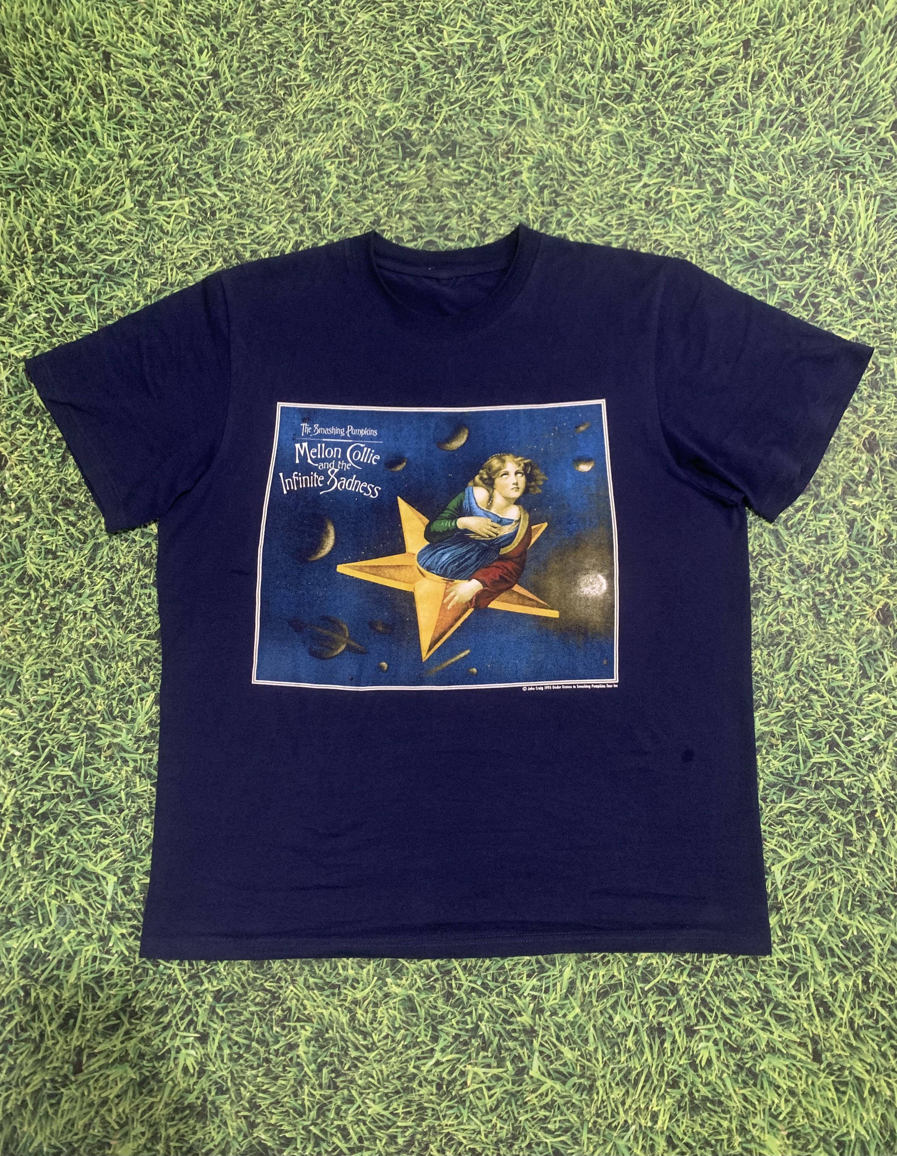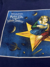 🌌 Dreamy Vintage 1995 The Smashing Pumpkins "Mellon Collie" T-Shirt! 🌌 Own a truly ethereal piece of 90s alternative rock history with this rare vintage The Smashing Pumpkins "Mellon Collie and the Infinite Sadness" t-shirt! This isn't just a shirt; it's a wearable masterpiece inspired by one of the most ambitious and beloved albums of its era. A Brief History: Released in 1995, "Mellon Collie and the Infinite Sadness" was The Smashing Pumpkins' groundbreaking double album, a sprawling epic that showcased their diverse musical range, from symphonic rock to intimate ballads. The album's iconic artwork, featuring a mystical "Star Girl" (inspired by the work of Sascha Schneider and other classical artists), became instantly recognizable. This t-shirt, bearing the album's mesmerizing front cover art and the "Infinite Sadness Tour" graphic on the back, was likely official merchandise from their extensive world tour supporting the album. It captures the melancholic beauty and cosmic grandeur that defined this seminal work, making it a highly coveted item for any fan of 90s alternative music. The copyright "© John Craig 1995 Under license to Smashing Pumpkins Tour Inc" confirms its authenticity as a piece from the actual tour era. Detailed Condition & Measurements: This vintage tee shows natural signs of wear, giving it a soft, worn-in feel and authentic character, as expected from a shirt from 1995. * Front Graphic: Features the iconic "Mellon Collie and the Infinite Sadness" album cover art in rich, deep blues and celestial imagery. The "The Smashing Pumpkins" text and album title are clearly visible. The print is still vibrant but shows some subtle signs of age-appropriate fading and very minor print distress, which adds to its vintage appeal. * Back Graphic: Displays a complementary "Infinite Sadness Tour" graphic featuring the stylized moon/sun image from the album's interior art. The print is clear with light fading. * Fabric: Soft, comfortable 100% cotton in a dark navy blue color. The tag is not visible in the provided image, which is common for vintage tees where tags may be worn or removed. * Copyright: The clear "© John Craig 1995 Under license to Smashing Pumpkins Tour Inc" copyright on the front confirms this is an authentic piece from the album's release/tour period. * Condition Issues (Please refer to photos for details): * Light Fading: The dark navy fabric shows an even, light fade consistent with its age, giving it a desirable vintage look. * Subtle Print Distress: The graphics show very minor, even cracking/distress that is typical for prints from this era, but nothing that detracts from the overall image. * No Major Flaws: There are no apparent rips, holes, significant tears, or prominent stains. The collar and seams appear intact and solid. Any minor imperfections are consistent with normal wear for a vintage item. * Measurements: * Width (pit to pit): 57 cm (approx. 22.4 inches) * Length (top of collar to bottom hem): 73 cm (approx. 28.7 inches) Please Note: This is a genuinely vintage item from 1995. Its condition reflects its age and history. Please examine all photos carefully as they are part of the description. Shipping: This item ships from Indonesia. Worldwide shipping available. Questions/Offers: Feel free to send a message with any questions or reasonable offers. We are happy to provide additional photos or information upon request. #SmashingPumpkins #MellonCollie #InfiniteSadness #VintageTee #90sAltRock #AlternativeRock #BillyCorgan #MusicMerch #VintageClothing #RareVintage #CollectorItem #90sFashion #Grunge #MusicHistory #Grailed #Streetwear #VintageGrailed #Depop #ThriftFinds