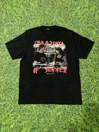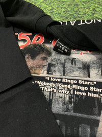 (500) Days of Summer x Joy Division Inspired Bootleg Tee - Rare Emotional Romance Vintage Shirt ⸻ Deskripsi Item : A rare bootleg tee inspired by the iconic indie romance film (500) Days of Summer, featuring Joseph Gordon-Levitt and Zooey Deschanel. This shirt captures one of the most memorable scenes from the movie, layered with the nostalgic quote: “I love Ringo Starr. Nobody loves Ringo Starr. That’s why I love him.” Printed on the back is a bold reinterpretation of Joy Division’s “Unknown Pleasures” album cover, mashed with the bittersweet tagline: “This is not a love story. This is a story about love.” This shirt wasn’t just made for fashion—it’s a tribute to heartbreak, love, music, and how pop culture blends everything into one emotional ride. If you’ve ever loved the film or been in a “Tom and Summer” situation, this tee will hit different. ⸻ Detail Size : • Lebar: 60 cm / 23.6 inch • Panjang: 77 cm / 30.3 inch • Tag Size: Xl • Brand Tag: Different class ⸻ Kondisi: • Used/Vintage condition • Print in good condition with slight fade (adds character) • No major holes or stains • Overall solid and wearable ⸻ Shipping Info: Ships from Indonesia Feel free to message me for offers, bundle deals, or any questions! . . #500daysofsummer #vintagemovie #vintagetee #bandtee #bootlegtee #indieromance #zoeydeschanel #josephgordonlevitt #joydivision #unknownpleasures #graphictee #rarevintage #y2kfashion #streetwearasia #grailedvintage #indovintage #thriftfinds #japanvintage #thailandvintage #europevintage