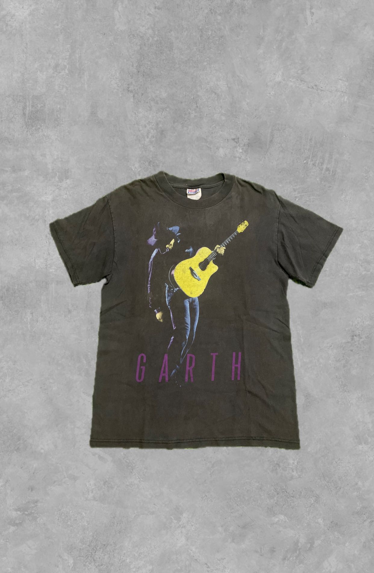 Classic Vintage Garth Brooks Concert T-Shirt - Faded Black (Hanes Beefy-T) Here's a fantastic find for country music fans and vintage concert tee collectors: a classic vintage Garth Brooks t-shirt, likely from one of his iconic tours. This tee captures the essence of a true country legend. The Story Behind the Tee: Garth Brooks is undeniably one of the most successful and influential artists in country music history, known for his electrifying live performances and groundbreaking stadium shows. This t-shirt, featuring a dynamic image of Garth with his guitar, was likely sold during one of his massive tours, perhaps in the late 80s or early 90s, when he was dominating the charts and redefining the genre. Wearing this shirt is a nod to an era of explosive popularity for country music and a tribute to a performer who consistently broke attendance records and connected deeply with his audience. The subtle "GARTH" lettering in purple adds a touch of classic tour merchandise aesthetic. Condition Details: This vintage tee is in good, faded vintage condition, showing wear consistent with its age and history. * Fabric: The black cotton fabric has faded beautifully over time to a soft, charcoal grey/faded black. It has a well-worn, comfortable feel, characteristic of genuine vintage garments. The tag is a Hanes Beefy-T, Adult M (38-40), indicating a reliable vintage blank. * Print Quality: The graphic of Garth Brooks and his guitar is visible, with some fading and cracking that adds to its authentic vintage character. The purple "GARTH" lettering below the graphic also shows some fading but remains clear. There are no major print losses. * Collar/Seams: The collar shows some minor wear and subtle stretching, which is common for vintage items. All seams appear generally intact, with no major holes or tears observed. * Overall Wear: As a genuine vintage item, this shirt exhibits overall fading (faded black/charcoal color) and general signs of age and wear. While it shows its age, these characteristics contribute significantly to its desirable vintage appeal and authenticity. Please examine all provided photos closely as they are part of the description and best illustrate the current condition, including the faded appearance. Measurements: * Width (pit-to-pit): 50 cm (approx. 19.7 inches) * Length (collar to hem): 72 cm (approx. 28.3 inches) Shipping & Inquiries: This item ships from Indonesia. For any questions, offers, or further details, please feel free to send me a direct message. Hashtags (20 total): #GarthBrooks #VintageCountry #CountryMusic #VintageBandTee #VintageTshirt #ConcertTee #MusicApparel #90sCountry #80sCountry #RetroFashion #ClassicCountry #FadedTee #HanesBeefyT #RareVintage #Grailed #Streetwear #MensFashion