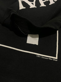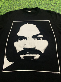 Rare Vintage 1991 Zooport Riot Gear "Charlie Don't Surf" Charles Manson Tee Product Description: This is an exceptionally rare and striking vintage t-shirt from 1991 by Zooport Riot Gear. The front features a bold, iconic black and white graphic of Charles Manson's face framed within a square. The back of the shirt prominently displays the controversial and famous phrase "CHARLIE DON'T SURF" in distressed white lettering, along with the "Zooport Riot Gear" logo. This tee is a significant piece of counter-culture and vintage apparel history. Made from what feels like sturdy, classic 100% cotton. Why This Shirt Was Made: This shirt, produced by "Zooport Riot Gear" in 1991, likely draws on the counter-culture and rebellious themes often associated with the phrase "Charlie Don't Surf" (popularized by the film Apocalypse Now, though recontextualized here with Charles Manson) and the notorious figure of Charles Manson. These types of controversial graphics were common in certain niches of alternative and underground fashion, aiming to provoke thought, challenge norms, or simply reflect a dark aesthetic popular at the time. It's a statement piece from a specific moment in pop culture history. Condition Details: This vintage 1991 Zooport Riot Gear t-shirt is in good, pre-owned condition, especially given its age. There are no significant rips, tears, or major holes. The black fabric retains its color well with typical, even fading for a vintage piece, contributing to its authentic look. Both the front graphic and the back print are largely intact, showing some natural cracking and distress, which is characteristic of genuine vintage prints and adds to its character. Please examine all provided photos closely for the most accurate depiction of its condition. Measurements: * Width: 56 cm (22.05 inches) * Length: 73 cm (28.74 inches) Shipping & Inquiries: Shipping from Indonesia. Feel free to send a message for offers or any questions! Hashtags (Max 17): #VintageTee #ZooportRiotGear #CharlieDontSurf #CharlesManson #Vintage90s #TrueVintage #RareTee #CultClassic #CounterCulture #GraphicTshirt #CollectorItem #Grunge #Streetwear #Grailed #ApocalypseNow #VintageFashion #BlackTee