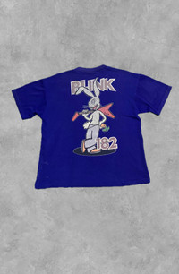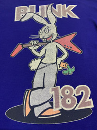 Rare Vintage Y2K Blink-182 "Bunny with Guitar" Graphic Tee - Moving Blue Tag! Product Description: This is a vibrant and rare vintage Blink-182 t-shirt from the early 2000s, featuring a unique graphic of the iconic "Blink-182 bunny" character holding a guitar, with a carrot dangling from it. The front showcases a smaller version of the bunny and the band name, while the back displays a larger, full graphic. This bright blue tee, on a "Moving Blue" tag, captures the playful and energetic spirit of the pop-punk legends. Made from 100% cotton, it's a fantastic piece for collectors and fans alike. Why This Shirt Was Made: This shirt was produced as official band merchandise during the peak of Blink-182's popularity in the late 90s/early 2000s. It features one of their unofficial but widely recognized mascots, the "Blink-182 bunny," allowing fans to showcase their allegiance to the band in a distinct and fun way, separate from typical album art tees. Condition Details: This vintage Blink-182 t-shirt is in good, pre-owned condition. It shows some light, even fading consistent with its age and wash, which adds to its vintage character. There are no major rips, tears, or holes. The graphic prints on both the front and back are largely intact with minor cracking, common for screen prints of this era, but nothing that detracts from the overall appeal. Please examine all provided photos closely for a comprehensive view of its condition. Measurements: * Width: 58 cm (22.83 inches) * Length: 69 cm (27.17 inches) Shipping & Inquiries: Shipping from Indonesia. Feel free to send a message for offers or any questions! Hashtags (Max 17): #Blink182 #VintageBandTee #PopPunk #Y2KFashion #BandMerch #MovingBlue #RareVintage #TravisBarker #TomDelonge #MarkHoppus #VintageTshirt #GraphicTee #Streetwear #Grailed #MusicFan #PunkRock #ConcertMerch