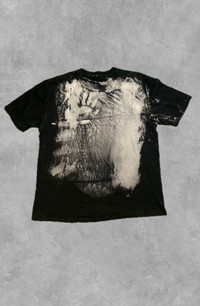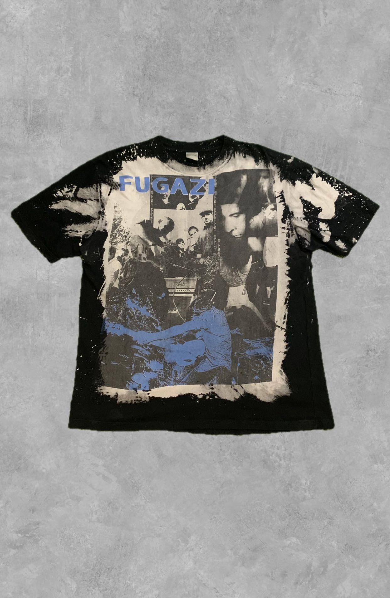 Unique Custom Bleached Fugazi Band Tee - Post-Hardcore Essential! Boot Product Description: This is a one-of-a-kind Fugazi band t-shirt, featuring a bold graphic collage of the iconic post-hardcore band. What makes this tee truly unique is the custom bleach-splatter treatment applied to the black fabric, creating an eye-catching, distressed white and blue effect around the edges and within the graphic. Made from 100% cotton, this shirt combines a classic band tee aesthetic with a distinctive, hand-modified look, perfect for any fan of Fugazi or unique streetwear. Why This Shirt Was Made: While the base shirt is likely standard band merchandise, the bleach treatment is a custom modification, often done by fans or small independent designers to personalize a garment and give it a unique, edgy aesthetic. This reflects a DIY ethos common in punk and hardcore subcultures, turning a regular band tee into a unique statement piece that stands out. Condition Details: This Fugazi t-shirt is in good, pre-owned condition. The primary "damage" is the intentional bleach treatment, which creates the unique white and blue patterns on the black fabric. This is a design feature, not a flaw. There are no rips, tears, or holes in the fabric. The graphic print itself is largely intact beneath the bleach areas, showing some slight wear consistent with a pre-owned item. Please examine all provided photos closely to appreciate the custom bleached effect and the overall condition. Measurements: * Width: 60 cm (23.62 inches) * Length: 75 cm (29.53 inches) * Size on Tag: (Please refer to image, appears to be an L or XL given measurements) Shipping & Inquiries: Shipping from Indonesia. Feel free to send a message for offers or any questions! Hashtags (Max 17): #Fugazi #PostHardcore #BandTee #CustomBleach #DIYFashion #PunkRock #IanMacKaye #DischordRecords #UniqueFashion #BandMerch #Streetwear #Grailed #MusicFan #VintageStyle #DistressedTee #Subculture #HardcorePunk