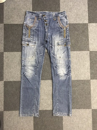 🔔Offer me a price, willing to negotiate🕭 🔹Size in inch(es) Waist :33 Outseam :43 Inseam :33 Front Rise :11 Thigh :12.75 Knee :8.5 Leg Opening : 8 🔹Type of Cut : Biker 🔹Condition :9/10 🔹Material : Cotton 🔹Defect : none -Please dont hesitate to ask if you have any question. ☡ATTENTION:☡ -An item that has been used or worn previously. Sold as is -See Our listing for full details and description of any imperfections. No refund. -Please don't expect it to be like new or in pristine condition -Please pay close attention to measurements provided. All measurement are taken while laying flat and relaxed(no stretch & no pressure on buttons).Need more photos of measurement ,please ask. -Do not rely on tag size as pre-worn items may have been altered, stretched or shrunk & vintage sizes do not directly translate the modern sizes.The best way to ensure a correct fit is to compare our measurements with the measurements of a similar item that you know fits you well.Please enlarge the photos for clearer image..Due to amateur measurement,please allow plus/minus 0.5 inch accuracy. -For special cut garment ,please refer photos of measurement. PAYMENT And SHIPPING: ■ Accept \"PAYPAL\" only ■ Item above $100 will be shipped via DHL Express and below $100 will be shipped via Standard International Shipping. Or if your price is lower than $100 but urgently need the item ,please add another $25.i will arrange the best shipping company.Tracking Number will be provided. ◾️25USD charge on after sale cancellation. ■Expected Shipping period takes within 3-5 days via DHL Express and Standard International Shipping within 2-3 weeks to arrived to its destination around the world.No shipping to Israel. Don't Worry About Customs Tax or Fees. I usually Declare all Items as 'Gift' & Declare Value of Item Lower than Original Price. All Items are Sold \"AS IS\" so Please be Sure to Read The Entire Description and Look at All The Pictures. Pleased doing business with you mate