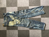 D92 ETERNAL Japan Phoenix Print Jeans 🔔Offer me a price, willing to negotiate🕭 🔹Size in inch(es) Waist : 32 Outseam : 42 Inseam : 33.5 Front Rise:10 Thigh : 12 Knee : 9 Leg Opening:8.5 🔹Type of Cut: Regular 🔹Colour: Medium Wash 🔹Condition : 8.5/10 🔹Material : Cotton 🔹Defect : None -Please dont hesitate to ask if you have any question. ☡ATTENTION:☡ -An item that has been used or worn previously. Sold as is -See Our listing for full details and description of any imperfections. No refund. -Please don't expect it to be like new or in pristine condition -Please pay close attention to measurements provided. All measurement are taken while laying flat and relaxed(no stretch & no pressure on buttons).Need more photos of measurement ,please ask. -Do not rely on tag size as pre-worn items may have been altered, stretched or shrunk & vintage sizes do not directly translate the modern sizes.The best way to ensure a correct fit is to compare our measurements with the measurements of a similar item that you know fits you well.Please enlarge the photos for clearer image..Due to amateur measurement,please allow plus/minus 0.5 inch accuracy. -For special cut garment ,please refer photos of measurement. PAYMENT And SHIPPING: ■ Accept \"PAYPAL\" only ■ Item above $100 will be shipped via DHL Express and below $100 will be shipped via Standard International Shipping. Or if your price is lower than $100 but urgently need the item ,please add another $25.i will arrange the best shipping company.Tracking Number will be provided. ◾️25USD charge on after sale cancellation. ■Expected Shipping period takes within 3-5 days via DHL Express and Standard International Shipping within 2-3 weeks to arrived to its destination around the world.No shipping to Israel. Don't Worry About Customs Tax or Fees. I usually Declare all Items as 'Gift' & Declare Value of Item Lower than Original Price. All Items are Sold \"AS IS\" so Please be Sure to Read The Entire Description and Look at All The Pictures. Pleased doing business with you mate