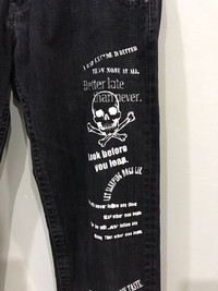 🔔Offer me a price, willing to negotiate🕭 🔹Size in inch(es) Waist : 32 Outseam : 42 Inseam :31.5 Front Rise :11 Thigh :13 Knee :10 Leg Opening : 9 🔹Type of Cut : Regular 🔹Condition : 9/10 🔹Colour : Black 🔹Made in : China 🔹Material : cotton 🔹Defect :none -Please dont hesitate to ask if you have any question. ☡ATTENTION:☡ -An item that has been used or worn previously. -See Our listing for full details and description of any imperfections. No refund. -Please don't expect it to be like new or in pristine condition -Please pay close attention to measurements provided. All measurement are taken while laying flat and relaxed(no stretch & no pressure on buttons).Need more photos of measurement ,please ask. -Do not rely on tag size as pre-worn items may have been altered, stretched or shrunk & vintage sizes do not directly translate the modern sizes.The best way to ensure a correct fit is to compare our measurements with the measurements of a similar item that you know fits you well.Please enlarge the photos for clearer image..Due to amateur measurement,please allow plus/minus 0.5 inch accuracy. -For special cut garment ,please refer photos of measurement. PAYMENT And SHIPPING: ■ Accept \"PAYPAL\" only ■ Item above $100 will be shipped via DHL Express and below $100 will be shipped via Standard International Shipping. Or if your price is lower than $100 but urgently need the item ,please add another $25.i will arrange the best shipping company.Tracking Number will be provided. ◾️25USD charge on after sale cancellation. ■Expected Shipping period takes within 3-5 days via DHL Express and Standard International Shipping within 2-3 weeks to arrived to its destination around the world.No shipping to Israel. Don't Worry About Customs Tax or Fees. I usually Declare all Items as 'Gift' & Declare Value of Item Lower than Original Price. All Items are Sold \"AS IS\" so Please be Sure to Read The Entire Description and Look at All The Pictures. Pleased doing business with you mate