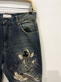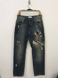 🔔Offer me a price, willing to negotiate🕭 🔹Size in inch(es) on tag 30 Waist : 31 Outseam :44.5 Inseam :33.5 Front Rise : 11 Thigh :12 Knee :9.5 Leg Opening : 8 🔹Type of Cut : Regular 🔹Condition : 9.3/10 🔹Colour : Denim 🔹Made in : China 🔹Material : cotton 🔹Defect :none.designed distressed,unfinished edge -Please dont hesitate to ask if you have any question. ☡ATTENTION:☡ -An item that has been used or worn previously. -See Our listing for full details and description of any imperfections. No refund. -Please don't expect it to be like new or in pristine condition -Please pay close attention to measurements provided. All measurement are taken while laying flat and relaxed(no stretch & no pressure on buttons).Need more photos of measurement ,please ask. -Do not rely on tag size as pre-worn items may have been altered, stretched or shrunk & vintage sizes do not directly translate the modern sizes.The best way to ensure a correct fit is to compare our measurements with the measurements of a similar item that you know fits you well.Please enlarge the photos for clearer image..Due to amateur measurement,please allow plus/minus 0.5 inch accuracy. -For special cut garment ,please refer photos of measurement. PAYMENT And SHIPPING: ■ Accept \"PAYPAL\" only ■ Item above $100 will be shipped via DHL Express and below $100 will be shipped via Standard International Shipping. Or if your price is lower than $100 but urgently need the item ,please add another $25.i will arrange the best shipping company.Tracking Number will be provided. ◾️25USD charge on after sale cancellation. ■Expected Shipping period takes within 3-5 days via DHL Express and Standard International Shipping within 2-3 weeks to arrived to its destination around the world.No shipping to Israel. Don't Worry About Customs Tax or Fees. I usually Declare all Items as 'Gift' & Declare Value of Item Lower than Original Price. All Items are Sold \"AS IS\" so Please be Sure to Read The Entire Description and Look at All The Pictures. Pleased doing business with you mate
